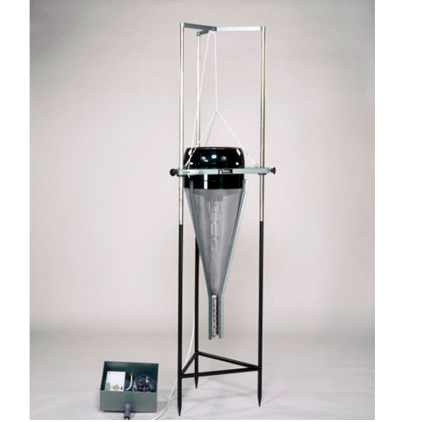 工作原理:根據(jù)風(fēng)速和采集昆蟲(chóng)的大小調(diào)節(jié)采集器的方法可以參考Taylor發(fā)表的文章(Ann. appl. Biol. Vol. 50, pp 405 – 421.)。采集到的昆蟲(chóng)被預(yù)先設(shè)置計(jì)時(shí)裝置按時(shí)間段的間隔分離開(kāi),這樣就能夠顯示昆蟲(chóng)的飛行周期。采集器支架為鋼管焊接,厚鎘鍍層防止腐蝕。操作箱為鐵制施以綠色瓷釉,室內(nèi)開(kāi)關(guān)和定時(shí)器通過(guò)防水的橡膠插座和采集器連接。多速率可逆的風(fēng)扇為采集器提供連續(xù)的氣流,在所有電壓和頻率下都可用。