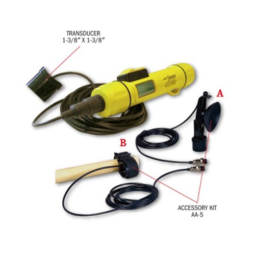 SM-5A外置傳感器聲納測深儀的傳感器位于12英尺(3.65米)的線纜末端,它可以被安裝在大型船舶的船體內(nèi)部,也可以安裝在船體外部的桿子或船鉤上。如果您離水不夠近,無法使用SM-5便攜式聲納測深儀的話,SM-5A外置傳感器聲納測深儀將會很有用。它的線纜和配件是防水的,但是主機不可在水下使用,因此請勿放入水中。可選的附件套件包含(A)用于外部船體安裝的堅固的吸盤支架,以及(B)用于立桿或船鉤安裝的Velcro / 2-block附件。如果您需要一根長度超過12 英尺(3.65米)的線纜,我們可以為您定制。